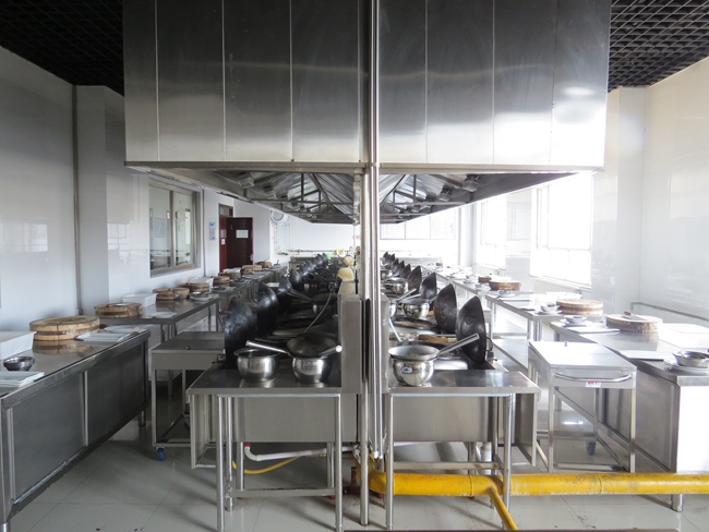 烹饪技术教研室占地面积2600平米,实训室面积为1600平米。建有标准化实训室16间:热菜实训室室2间、中式面点实训室1间、西式面点实训室1间、裱花实训室1间、烘焙实训室1间、基本功实训室2间、冷菜制作实训室1间、糖艺面塑实训室1间、西餐制作实训室2间、大师工作室1间、就业、创业平台2个,实训工位数500个。