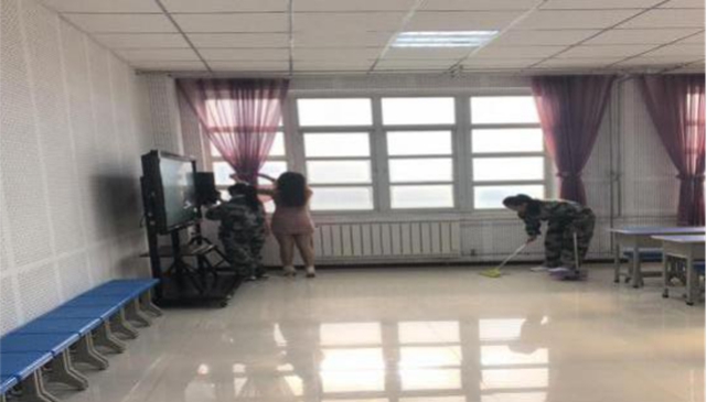 赵文丽老师与王巍老师带领班主任们检查各自班级环境区,做到无死角清洁