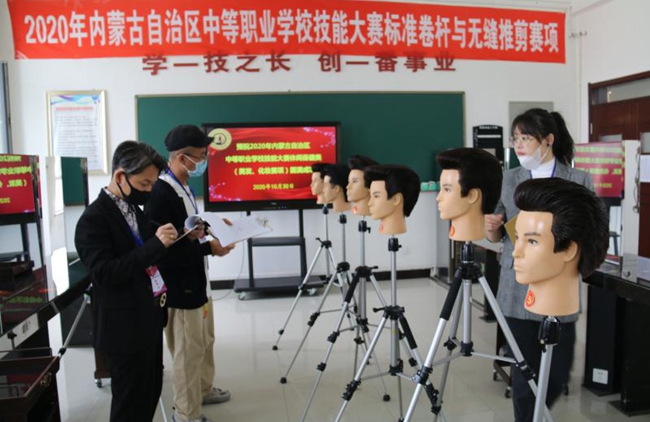 2020年10月30日上午,由包头服务管理职业学校形象设计教研室协办的2020年全区中等职业学校技能大赛休闲保健类标准卷杠与无缝推剪和晚宴化妆与盘发造型两个项目的比赛正式拉开帷幕。