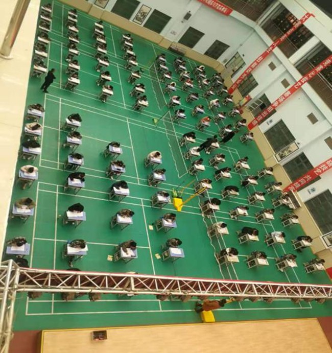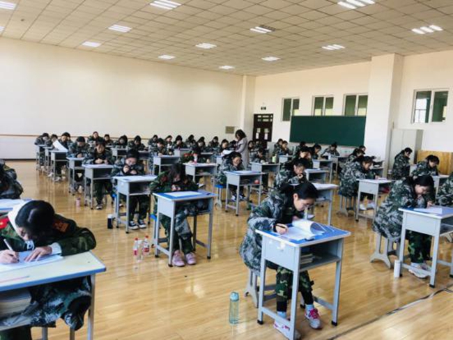 考场安排采取单人、单桌、单行、分班考试的方式,保证学生考试成绩的真实性。
