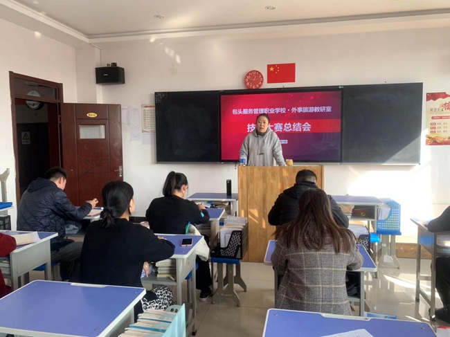 最后,王琳娜强调了本次总结会在及时总结经验、固化大赛成果、后续改进突破等方面的重要性, 并就充分发挥技能大赛对教育教学改革的积极促进作用,从抓基础、抓普及、抓制度完善等方面作具体要求:一要外事旅游教研室要将组织技能大赛作为一项教学常规工作,落实专职人员负责大赛的日常事宜;二要进一步提高对技能大赛工作的认识,技能大赛是推进人才培养模式创新、提高学生职业技能水平的重要手段,对建设“双师型”教师队伍和培养高素质技能人才具有重要意义;三是通过打造“教、学、赛、研”四位一体的教学模式,充分发挥技能大赛在人才培养过程中的作用,实现专业人才培养质量的提高;四要通过“以赛促训,以训促练,以练促学”的途径,形成“学技能、练技能、赛技能”的良好风尚。教研室将进一步改进选拔制度,促进新老传承,加强同行交流,形成备赛、参赛的常态化机制,形成技能人才培养新局面,扎实提高教育教学质量。