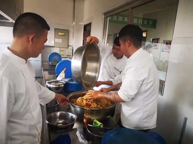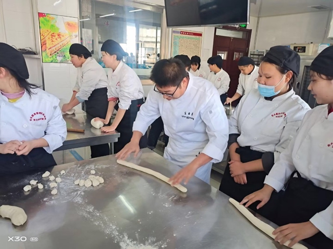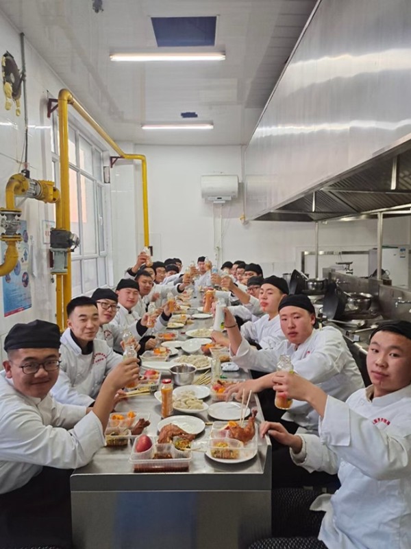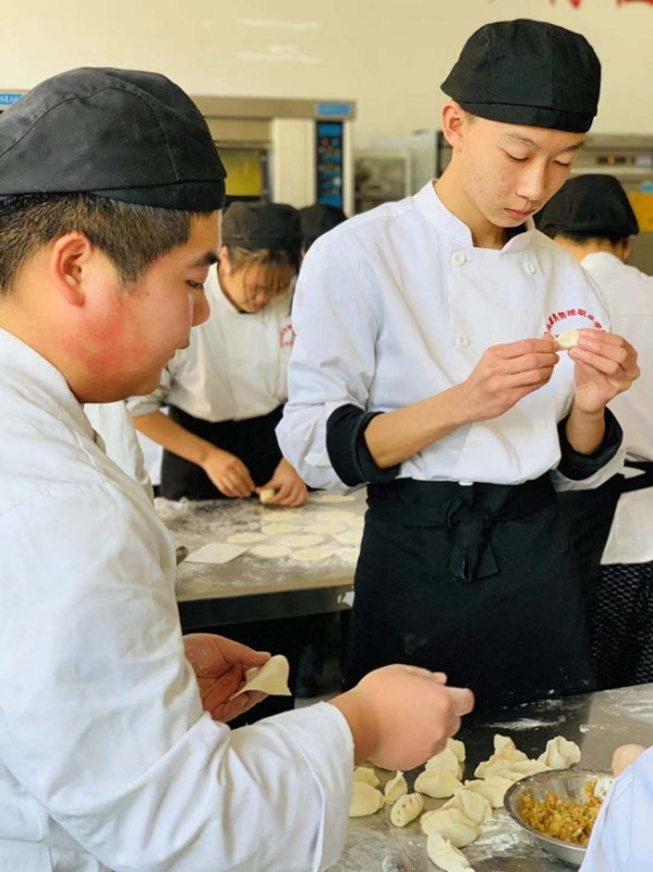 冬至的这一天,白昼最短,思念最长。人们把将人间最美好的祝福都“包”含在饺子中,这个季节,再多的寒流也抵不住内心的暖意,因为在烹饪技术教研室,有这样的老师,用不同的方式,用大爱守护着烹饪学子。冬至时家的情怀,对住校的孩子们而言,就是一碗妈妈包的水饺的味道。为此,教研室提前策划方案,各个专业班级积极配合,同学们利用自身专业特长各显其能。教研室的全体老师们、同学们一起动手,拌馅料、擀饺皮、调凉菜、煮饺子,忙的热火朝天、开心快乐,好不热闹。最后,每一位同学都吃上了自己亲手制作的热腾腾的饺子。同学们说,老师,就像我们的父母,细致周到、关怀备至,在学校里,我们真切感受到了家的温暖。