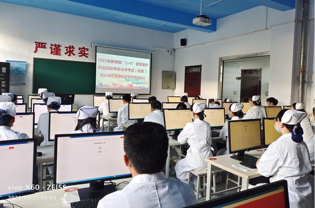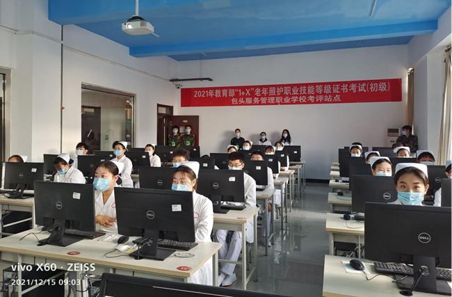 为了深入贯彻《国家职业教育改革实施方案》,落实教育部等四部门印发《关于在院校实施“学历证书+若干职业技能等级证书”制度试点方案》的文件精神,我校成功申报教育部首批“1+X”老年照护职业技能等级证书(初级)试点院校,被教育厅确定为“1+X”老年照护(初级)考评点。根据“1+X”老年照护证书项目的建设内容,我校积极与中福协、内蒙古考评站对接,完成了考评场地的布置改造、设备用具的完善,遴选3名骨干教师参加“1+X”老年照护师资培训和考评员培训,赴兄弟学校就“1+X”老年照护考评工作学习取经。